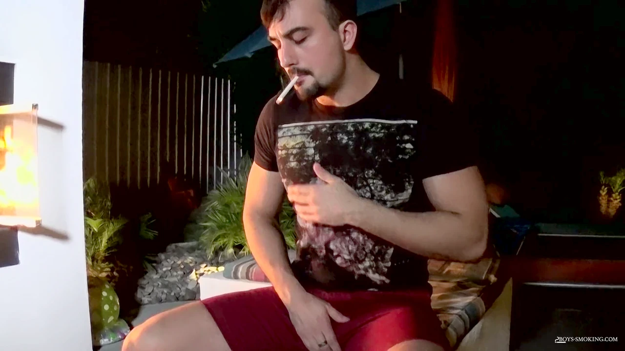 Mason Lear, muscoloso, si dà piacere mentre fuma.